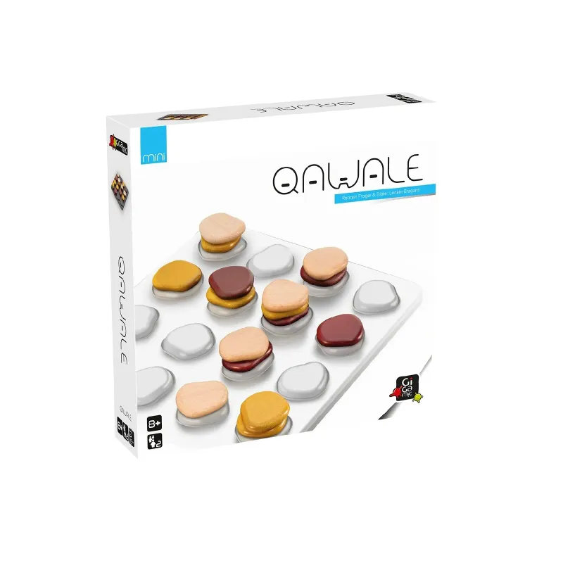 Društvena igra Qawale mini je jednostavna ali ipak taktički zahtevna igra koja će vas itekako zainteresovati ako ste ljubitelj ovakvih igara. Položite kamenje na stazu i pokušajte da napravite niz od četiri kamenčića u Vašoj boji. Qawale mini je inspirisana tradicijom slaganja kamenja duž staza i puteva u prirodi. Dok budete slagali kamenje dož puta, ova igra će Vas odvesti do mesta gde se strategija i priroda spajaju. Pravila društvene igre Qawale mini su vrlo jednostava: svaki igrač uzima 8 kamenčića u svojoj boji, kamenčići u trećoj boji su neutralni i raspoređuju se u uglove table. Na Vašem potezu, stavite kamen na bilo koju gomilu i pomerite je, ali obratite pažnju jer na svakom polju koje ste prošli morate ostaviti po jedan kamen. Prvi igrač koji napravi niz od 4 kamenčića u svojoj boji pobediće! Da li ste spremni da se oprobate i pokažete kako razmišljate i planirate?